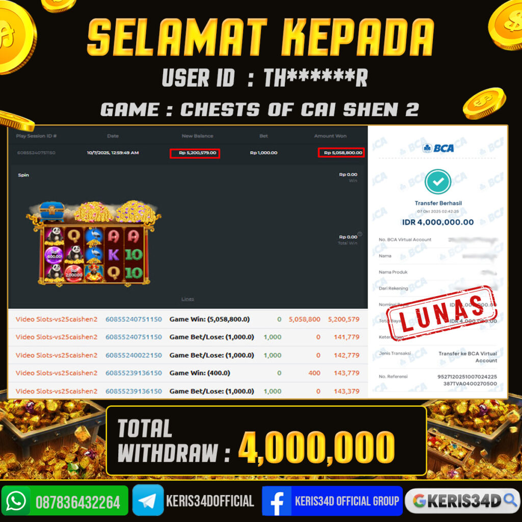 JACKPOT SLOT GACOR MAIN CHESTS OF CAI SHEN 2 07 OCTOBER 2025, Jackpot Slot Gacor, Kemenangan Slot, Bukti Kemenangan Slot, Kemenangan PGSOFT, Menang Slot online, Slot Gacor, Situs Aman Terpercaya, WD Berapapun Pasti DI Bayar Tuntas, Maxwin Slot Online.