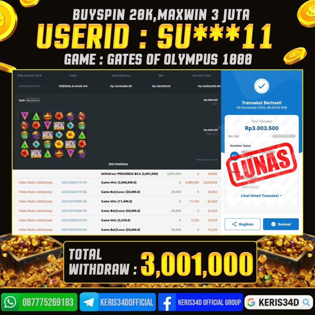 TOTAL KEMENANGAN : Rp. 3.001.000