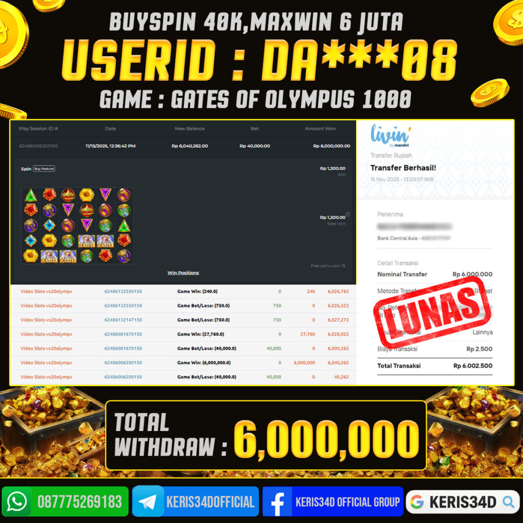 Setiap hari, member KERIS34D berhasil meraih jackpot besar dari berbagai provider slot ternama yang kami sediakan, seperti Pragmatic Play, Habanero, PG Soft, dan masih banyak lagi. Kami secara rutin menampilkan bukti screenshot atau rekapan kemenangan yang berhasil diraih, mulai dari kemenangan ratusan ribu hingga puluhan juta rupiah. Semua slip kemenangan ini kami hadirkan untuk membuktikan bahwa di KERIS34D, peluang menang itu nyata