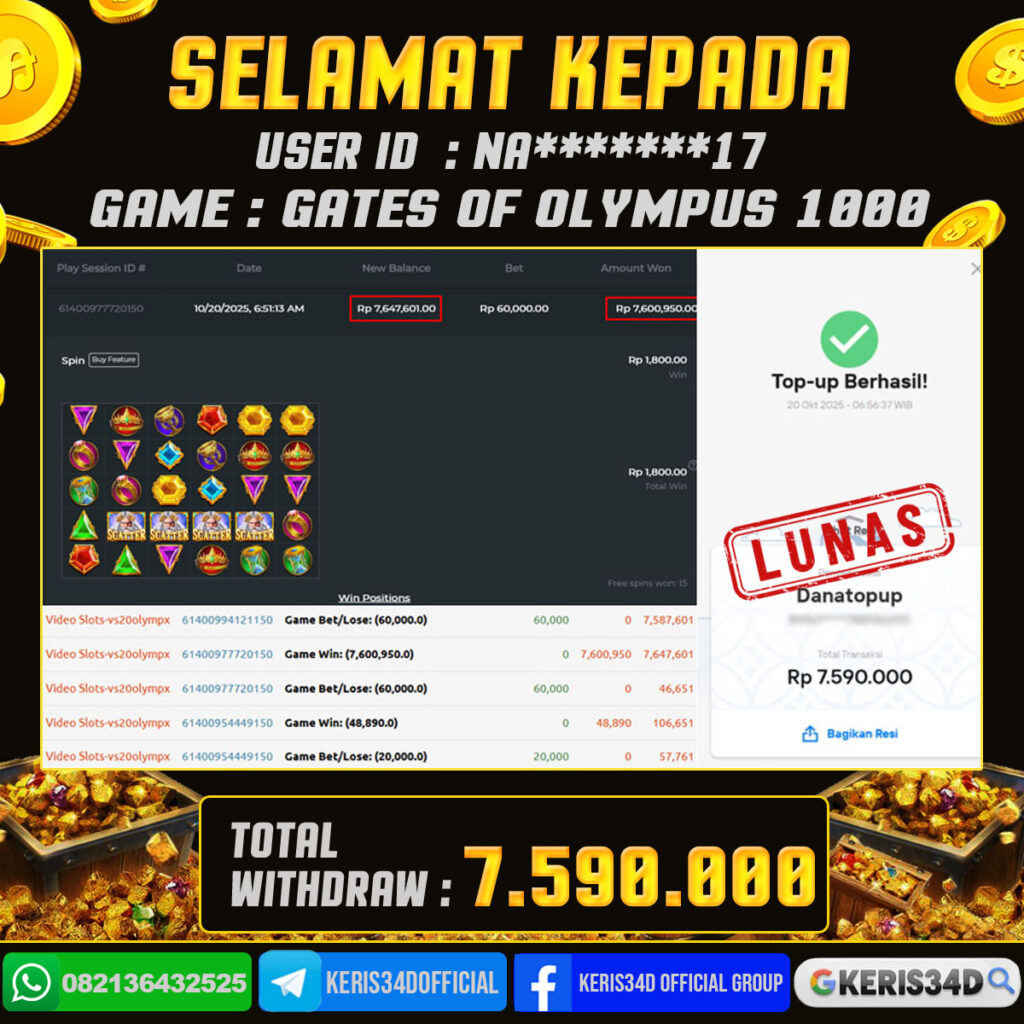 TOTAL KEMENANGAN : Rp. 7.590.000
