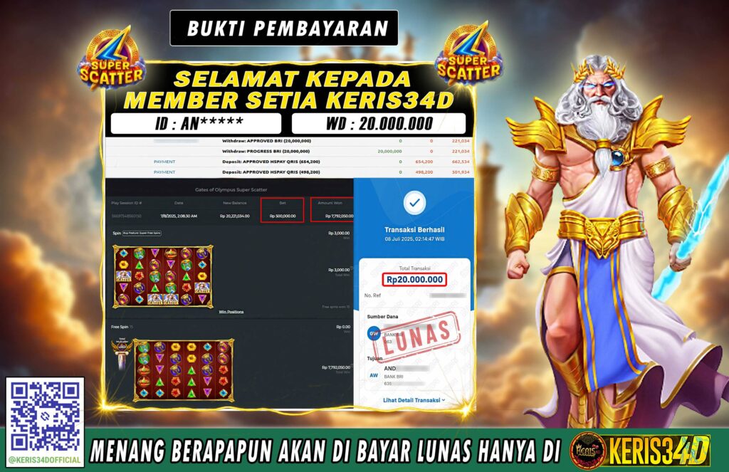 SSetiap hari, member KERIS34D berhasil meraih jackpot besar dari berbagai provider slot ternama yang kami sediakan, seperti Pragmatic Play, Habanero, PG Soft, dan masih banyak lagi. Kami secara rutin menampilkan bukti screenshot atau rekapan kemenangan yang berhasil diraih, mulai dari kemenangan ratusan ribu hingga puluhan juta rupiah. Semua slip kemenangan ini kami hadirkan untuk membuktikan bahwa di KERIS34D, peluang menang itu nyata