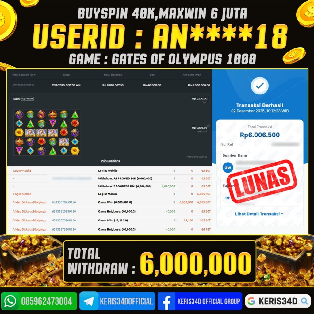 KERIS34D dikenal sebagai situs terpercaya yang selalu menghadirkan pengalaman bermain slot online yang aman, fair, dan berlisensi resmi. Di sini, kami tidak hanya sekadar memberikan janji, tapi bukti nyata berupa slip kemenangan yang dapat Anda lihat secara langsung.