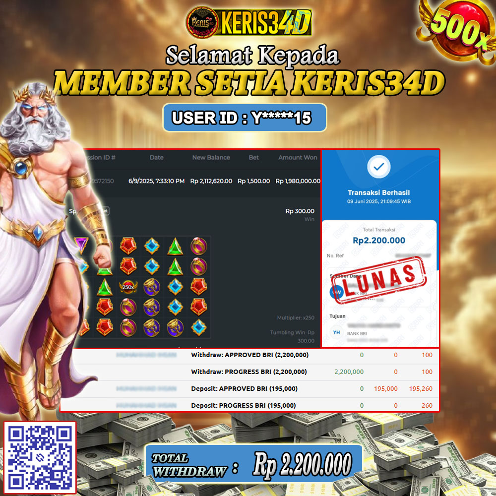 SSetiap hari, member KERIS34D berhasil meraih jackpot besar dari berbagai provider slot ternama yang kami sediakan, seperti Pragmatic Play, Habanero, PG Soft, dan masih banyak lagi. Kami secara rutin menampilkan bukti screenshot atau rekapan kemenangan yang berhasil diraih, mulai dari kemenangan ratusan ribu hingga puluhan juta rupiah. Semua slip kemenangan ini kami hadirkan untuk membuktikan bahwa di KERIS34D peluang menang itu nyata