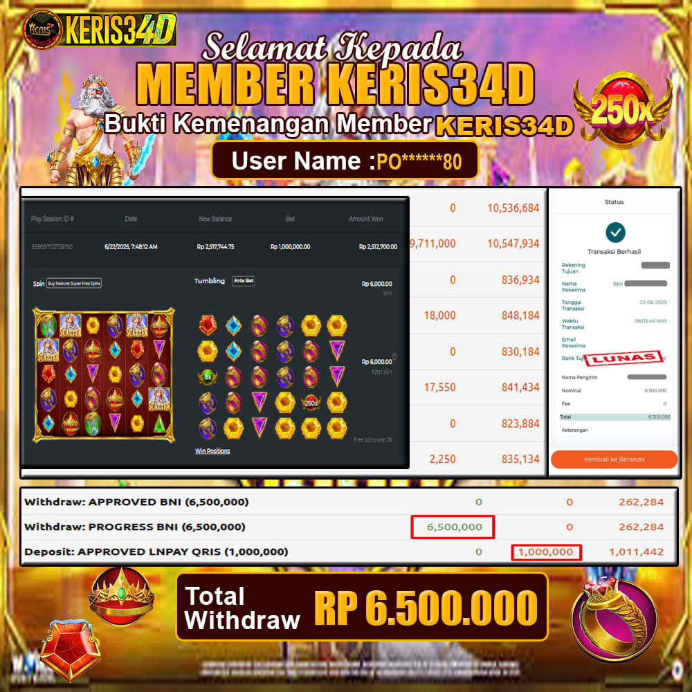TOTAL KEMENANGAN : Rp. 6.500.000