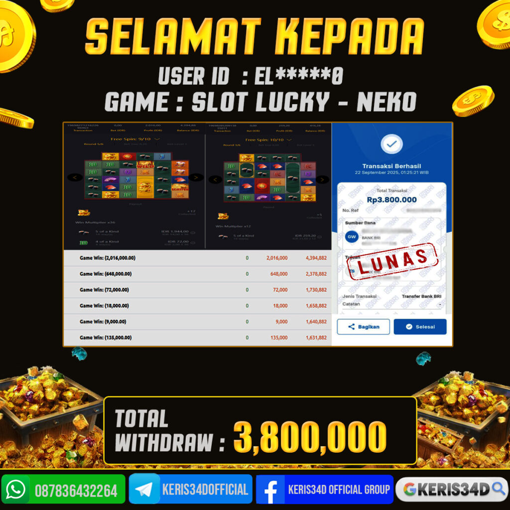 JACKPOT SLOT GACOR MAIN LUCKY NEKO 22 SEPTEMBER 2025, Jackpot Slot Gacor, Kemenangan Slot, Bukti Kemenangan Slot, Kemenangan PGSOFT, Menang Slot online, Slot Gacor, Situs Aman Terpercaya, WD Berapapun Pasti DI Bayar Tuntas, Maxwin Slot Online.