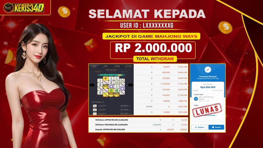 Setiap hari, member KERIS34D berhasil meraih jackpot besar dari berbagai provider slot ternama yang kami sediakan, seperti Pragmatic Play, Habanero, PG Soft, dan masih banyak lagi. Kami secara rutin menampilkan bukti screenshot atau rekapan kemenangan yang berhasil diraih, mulai dari kemenangan ratusan ribu hingga puluhan juta rupiah. Semua slip kemenangan ini kami hadirkan untuk membuktikan bahwa di KERIS34D, peluang menang itu nyata