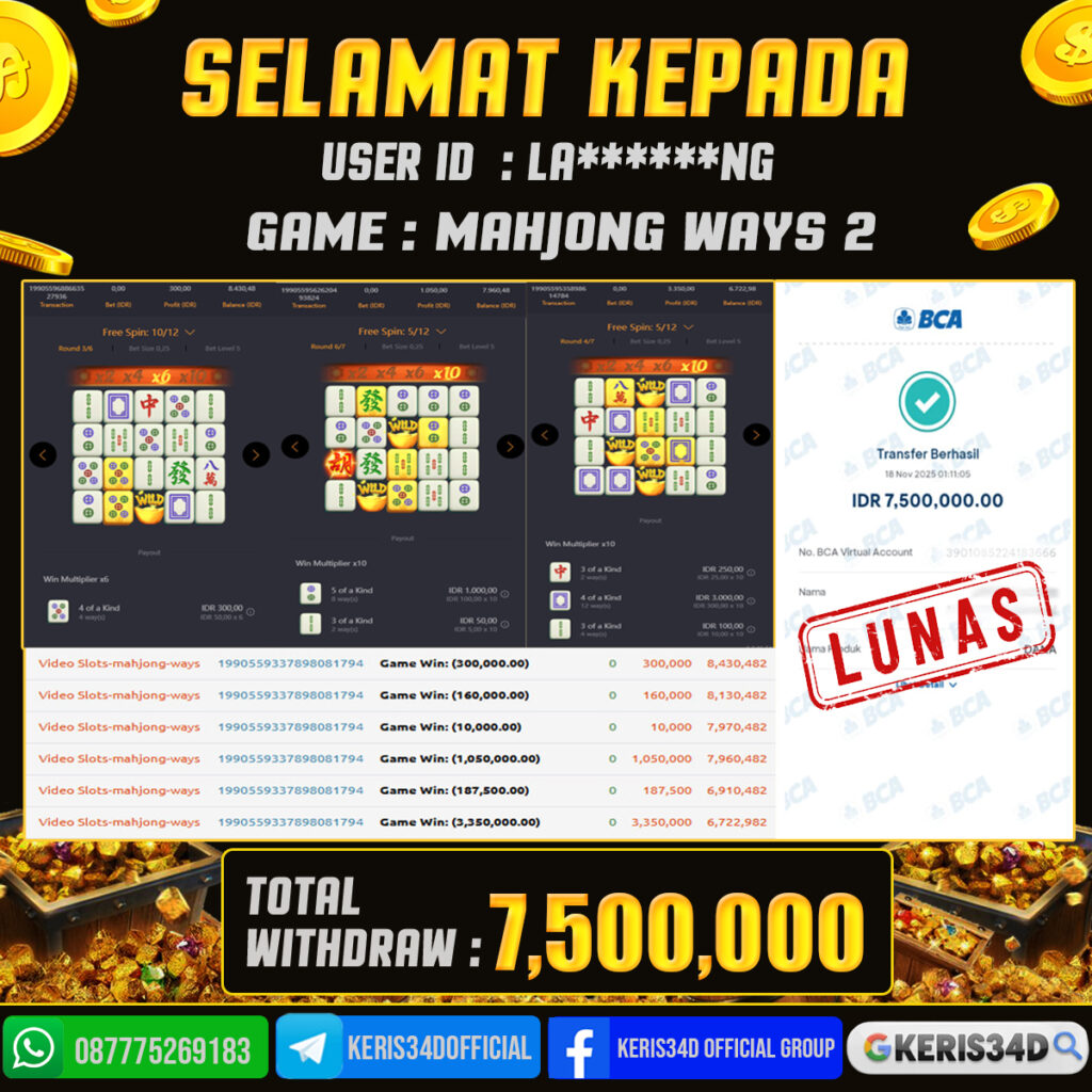 TOTAL KEMENANGAN : Rp. 7.500.000