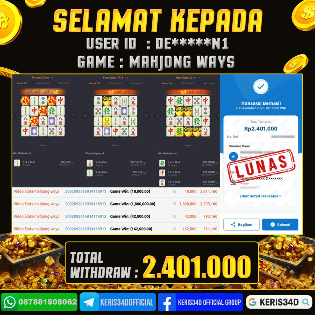 JACKPOT SLOT GACOR MAIN MAHJONG WAYS 20 DESEMBER 2025, Jackpot Slot Gacor, Kemenangan Slot, Bukti Kemenangan Slot, Kemenangan PGSOFT, Menang Slot online, Slot Gacor, Situs Aman Terpercaya, WD Berapapun Pasti DI Bayar Tuntas, Maxwin Slot Online.