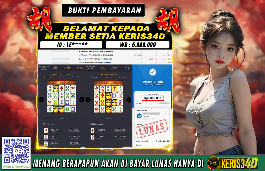 KERIS34D dikenal sebagai situs terpercaya yang selalu menghadirkan pengalaman bermain slot online yang aman, fair, dan berlisensi resmi. Di sini, kami tidak hanya sekadar memberikan janji, tapi bukti nyata berupa slip kemenangan yang dapat Anda lihat secara langsung.