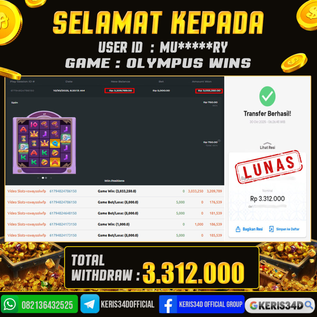 JACKPOT SLOT GACOR OLYMPUS WINS 30 OKTOBER 2025, Jackpot Slot Gacor, Kemenangan Slot, Bukti Kemenangan Slot, Kemenangan PRAGMATIC PLAY, Menang Slot online, Slot Gacor, Situs Aman Terpercaya, WD Berapapun Pasti DI Bayar Tuntas, Maxwin Slot Online.