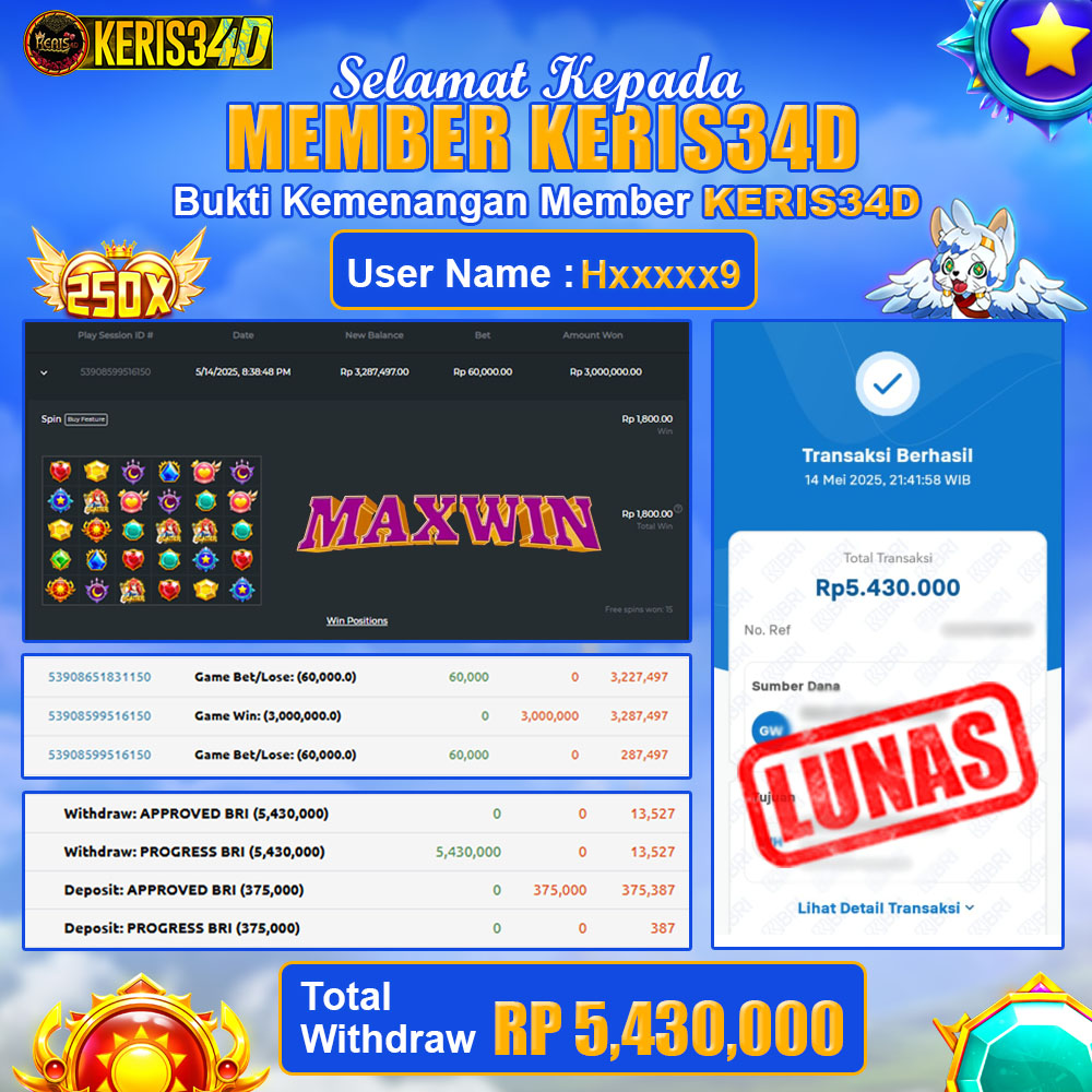 SSetiap hari, member KERIS34D berhasil meraih jackpot besar dari berbagai provider slot ternama yang kami sediakan, seperti Pragmatic Play, Habanero, PG Soft, dan masih banyak lagi. Kami secara rutin menampilkan bukti screenshot atau rekapan kemenangan yang berhasil diraih, mulai dari kemenangan ratusan ribu hingga puluhan juta rupiah. Semua slip kemenangan ini kami hadirkan untuk membuktikan bahwa di KERIS34D, peluang menang itu nyata