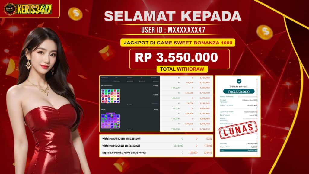 Setiap hari, member KERIS34D berhasil meraih jackpot besar dari berbagai provider slot ternama yang kami sediakan, seperti Pragmatic Play, Habanero, PG Soft, dan masih banyak lagi. Kami secara rutin menampilkan bukti screenshot atau rekapan kemenangan yang berhasil diraih, mulai dari kemenangan ratusan ribu hingga puluhan juta rupiah. Semua slip kemenangan ini kami hadirkan untuk membuktikan bahwa di KERIS34D, peluang menang itu nyata