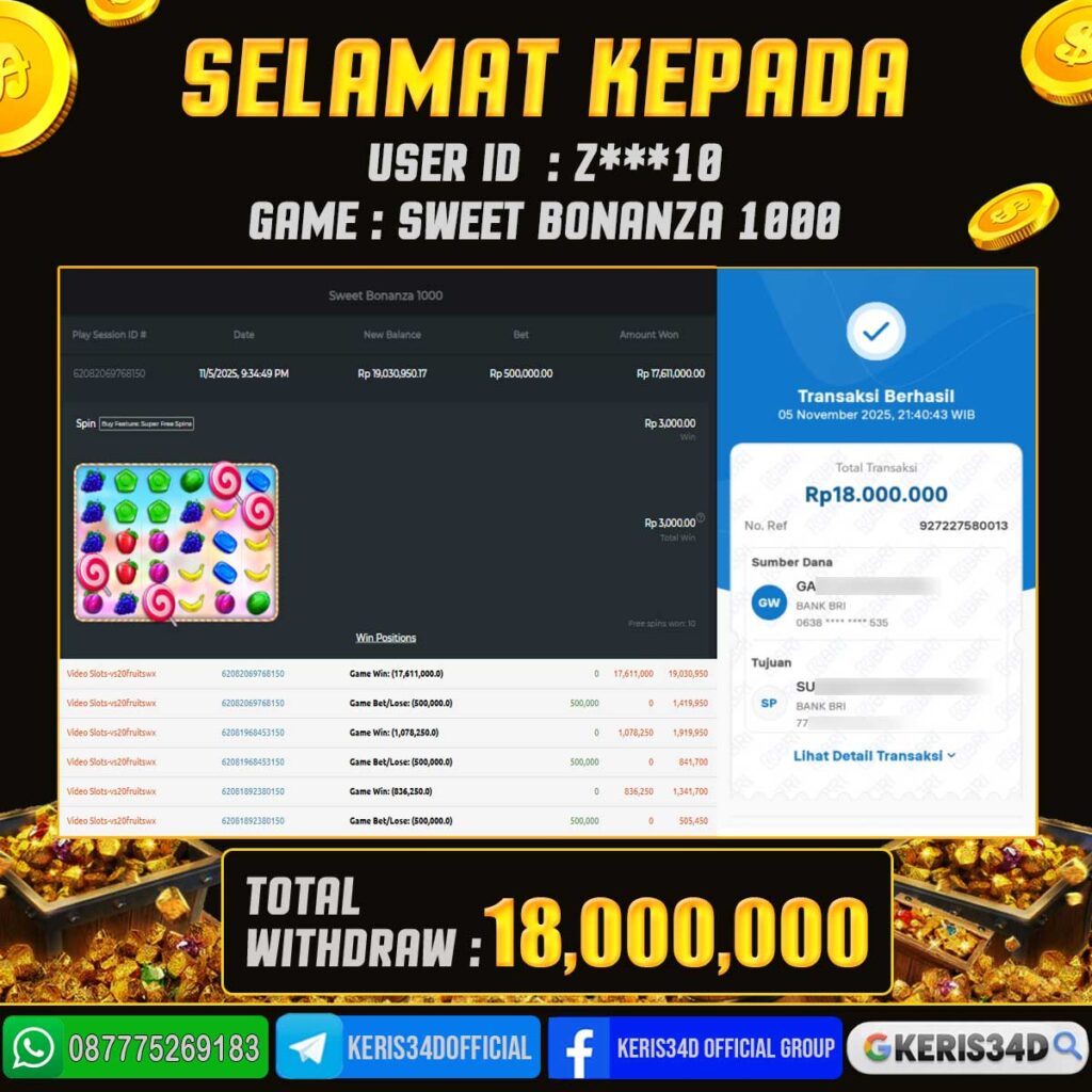 TOTAL KEMENANGAN : Rp. 18.000.000