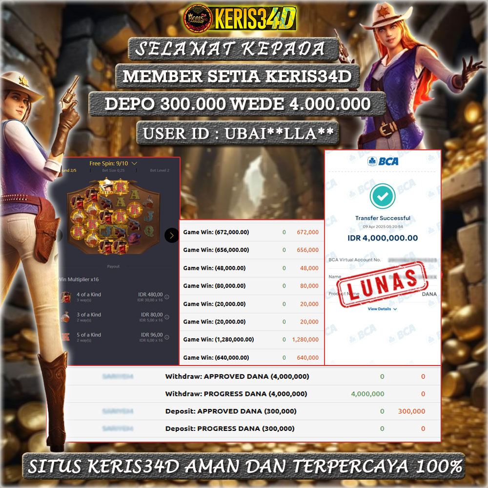 Setiap hari, member KERIS34D berhasil meraih jackpot besar dari berbagai provider slot ternama yang kami sediakan, seperti Pragmatic Play, Habanero, PG Soft, dan masih banyak lagi. Kami secara rutin menampilkan bukti screenshot atau rekapan kemenangan yang berhasil diraih, mulai dari kemenangan ratusan ribu hingga puluhan juta rupiah. Semua slip kemenangan ini kami hadirkan untuk membuktikan bahwa di KERIS34D, peluang menang itu nyata