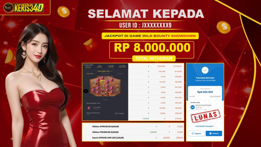 KERIS34D dikenal sebagai situs terpercaya yang selalu menghadirkan pengalaman bermain slot online yang aman, fair, dan berlisensi resmi. Di sini, kami tidak hanya sekadar memberikan janji, tapi bukti nyata berupa slip kemenangan yang dapat Anda lihat secara langsung.
