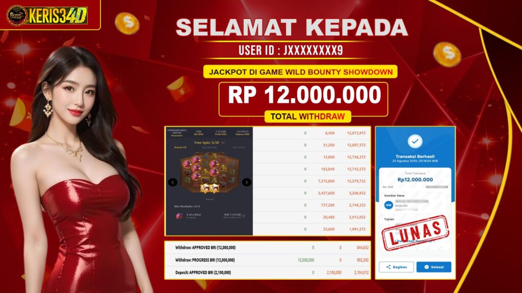 Setiap hari, member KERIS34D berhasil meraih jackpot besar dari berbagai provider slot ternama yang kami sediakan, seperti Pragmatic Play, Habanero, PG Soft, dan masih banyak lagi. Kami secara rutin menampilkan bukti screenshot atau rekapan kemenangan yang berhasil diraih, mulai dari kemenangan ratusan ribu hingga puluhan juta rupiah. Semua slip kemenangan ini kami hadirkan untuk membuktikan bahwa di KERIS34D, peluang menang itu nyata