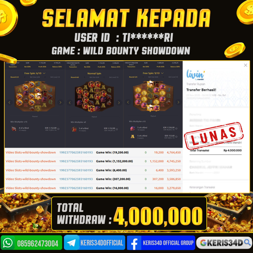 JACKPOT SLOT GACOR MAIN WILD BOUNTY SHOWDOWN 23 NOVEMBER 2025