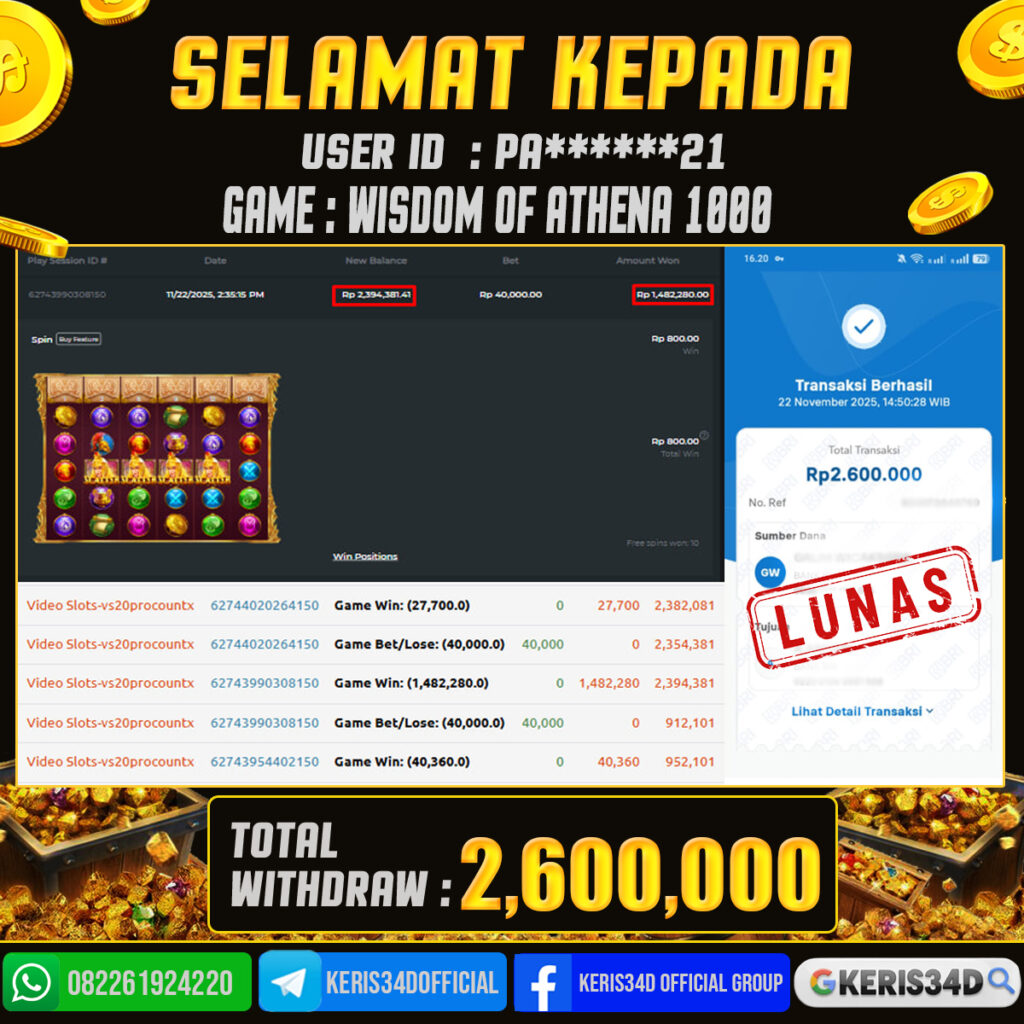 JACKPOT SLOT GACOR MAIN WISDOM OF ATHENA 1000 22 NOVEMBER 2025, Jackpot Slot Gacor, Kemenangan Slot, Bukti Kemenangan Slot, Kemenangan PRAGMATIC PLAY, Menang Slot online, Slot Gacor, Situs Aman Terpercaya, WD Berapapun Pasti DI Bayar Tuntas, Maxwin Slot Online.