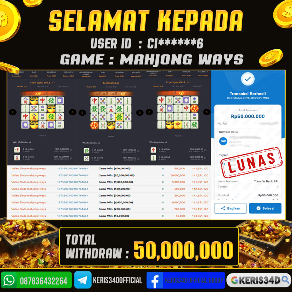 JACKPOT SLOT GACOR MAIN MAHJONG WAYS 03 OCTOBEER 2025